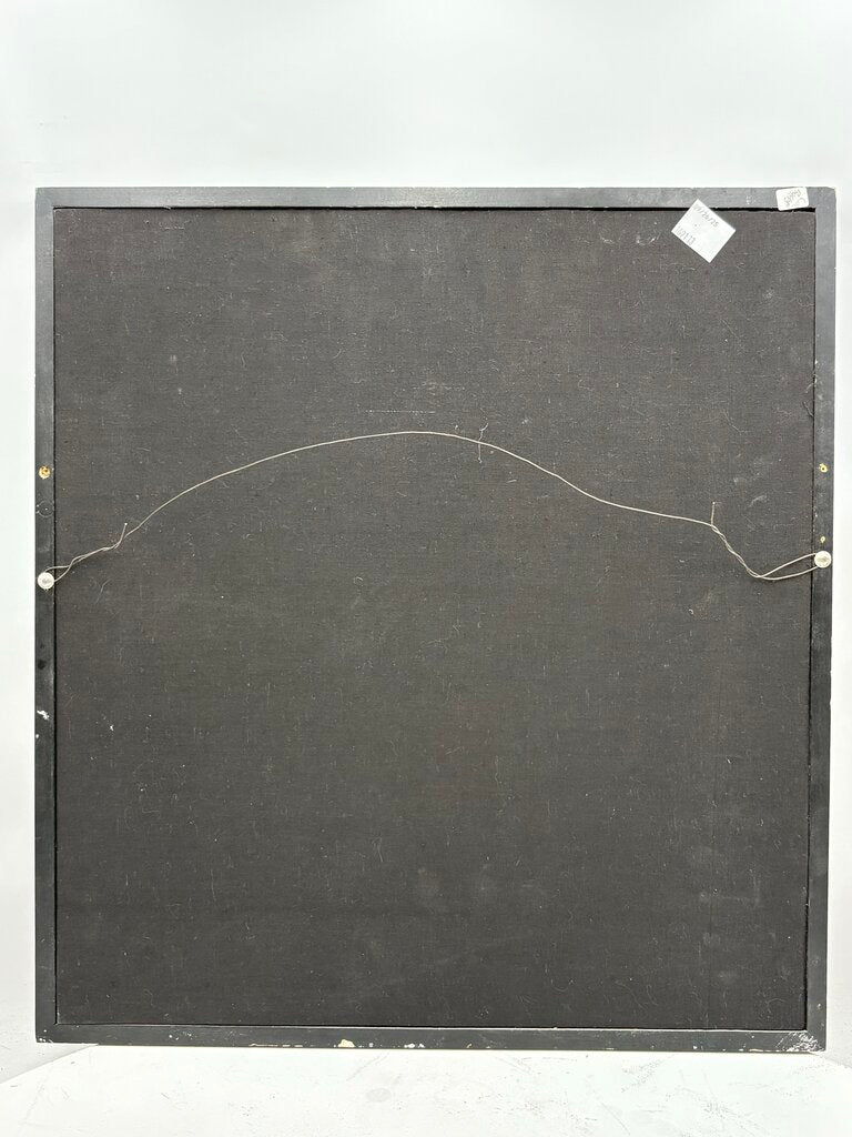 Frame: 21.3"H x 19.8"W x 1.3"D Image: 15.75"H x 14"W Good Condition minor edge separation. Cloisonne Wall Art "Island Girl with Jungle Cat" Artist Unknown