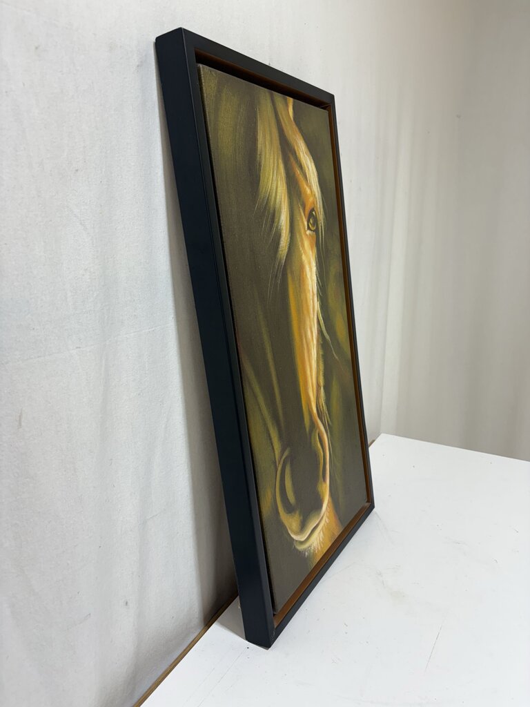 Frame: 25.6"H x 13.75"W x 1.6"D Image: 23.6"H x 11.75"W Very Good Condition Decorative Canvas Art Horse Head Print