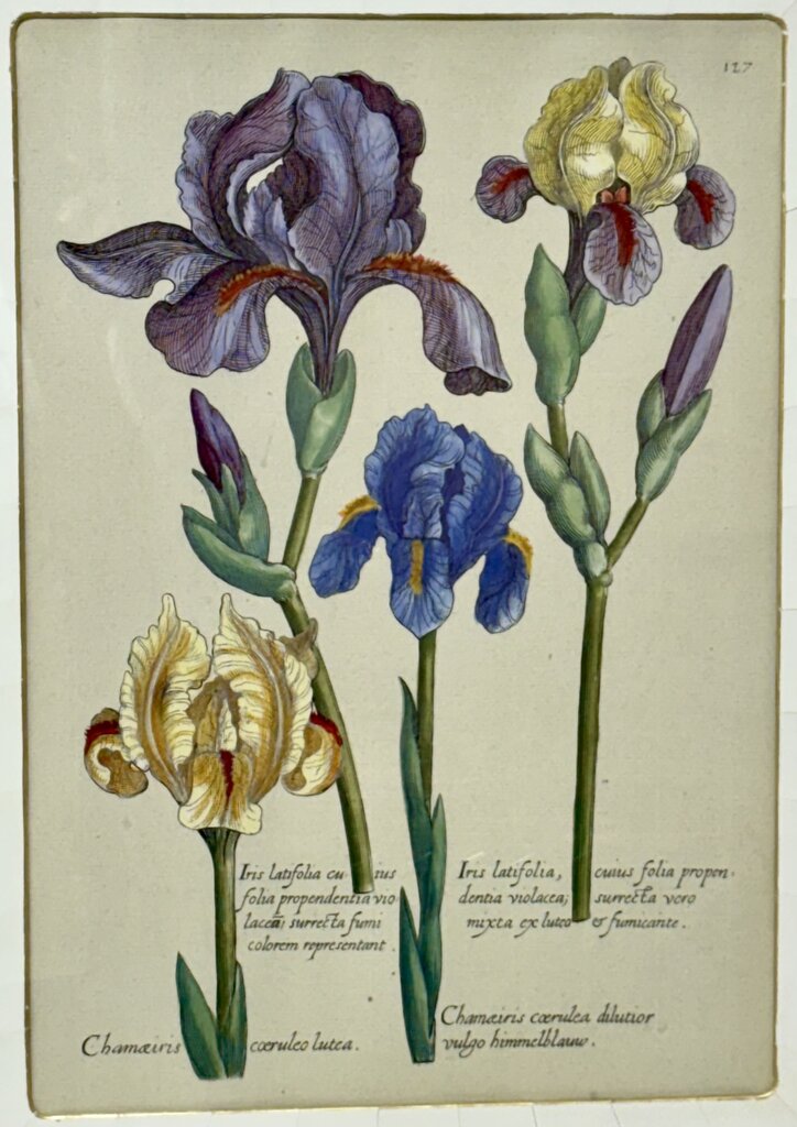 Johann de Brys Botanical Print "Iris" Colored Reproduction Litho