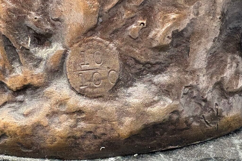 Late 19th C. Auguste Moreau "The Secret" Bronze Cast Sculpture Signed #10/100 Foundry Mark on Black Marble Base