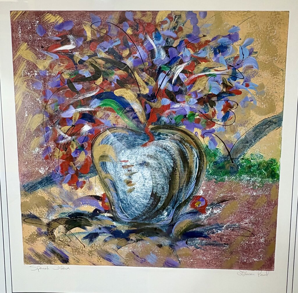 Over Size Frame: 56.3"H x 40.3"W x 2"D Image: 25.5" Sqr. Excellent Condition Lauren Paul "Spanish Flower" Original Mono Print Signed w/ Cert on Back