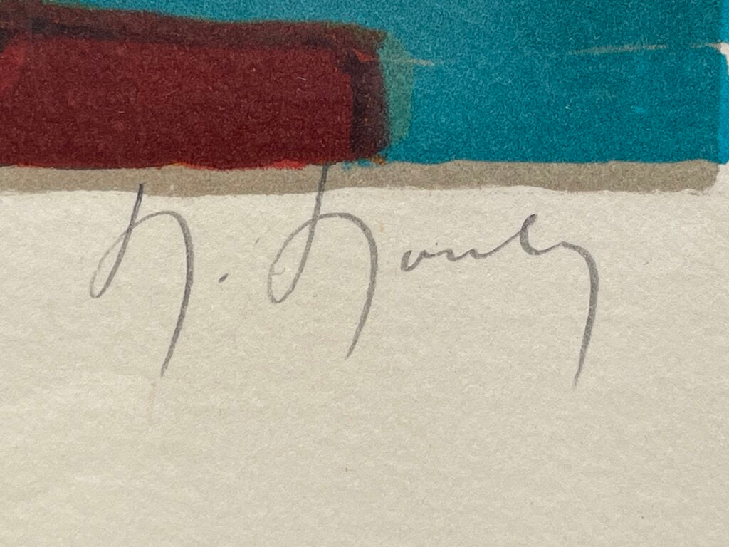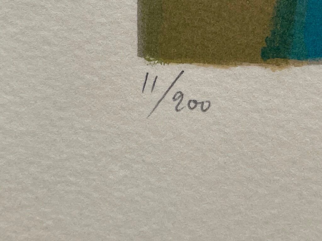 Marcel Mouly "Composition in Blue" 1976 Lithograph Mounted in Acrylic Case #11/200 Signed