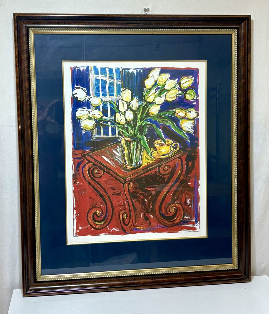 Frame: 41"H x 35"W x 2"D Image: 25.5"H x 19.5"W Excellent Condition Michele Richard Kennedy Red Tulips #14/100 Signed Lithograph