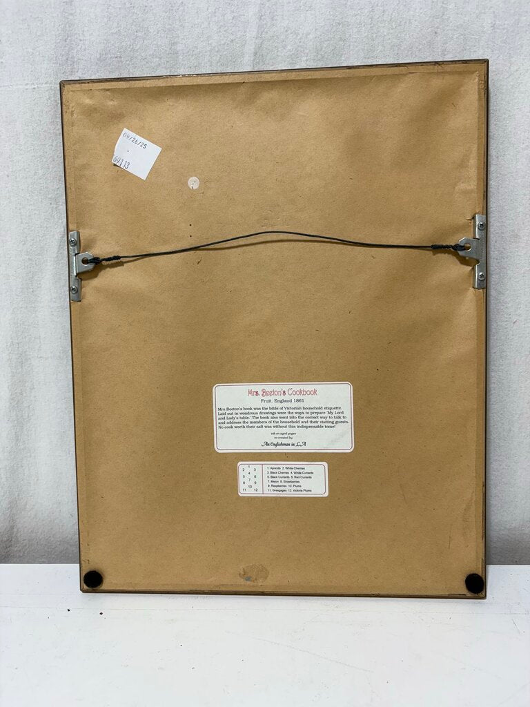 Frame: 14.75"H x 11.75"W x 1"D Image Area: 10"H x 6.8"W Very Good Color Reproduction of a page from Mrs. Beeton's Cookery Book "Fruit" 1861 Open edition Replica Print