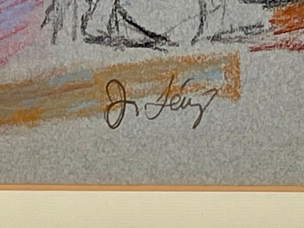 Frame: 17.75"H x 21"W x .6"D Image: 11.3"H x 15"W Excellent Condition Original Signed Pastel Drawing "Isaac Perlman with Charles Dutoit" 1986