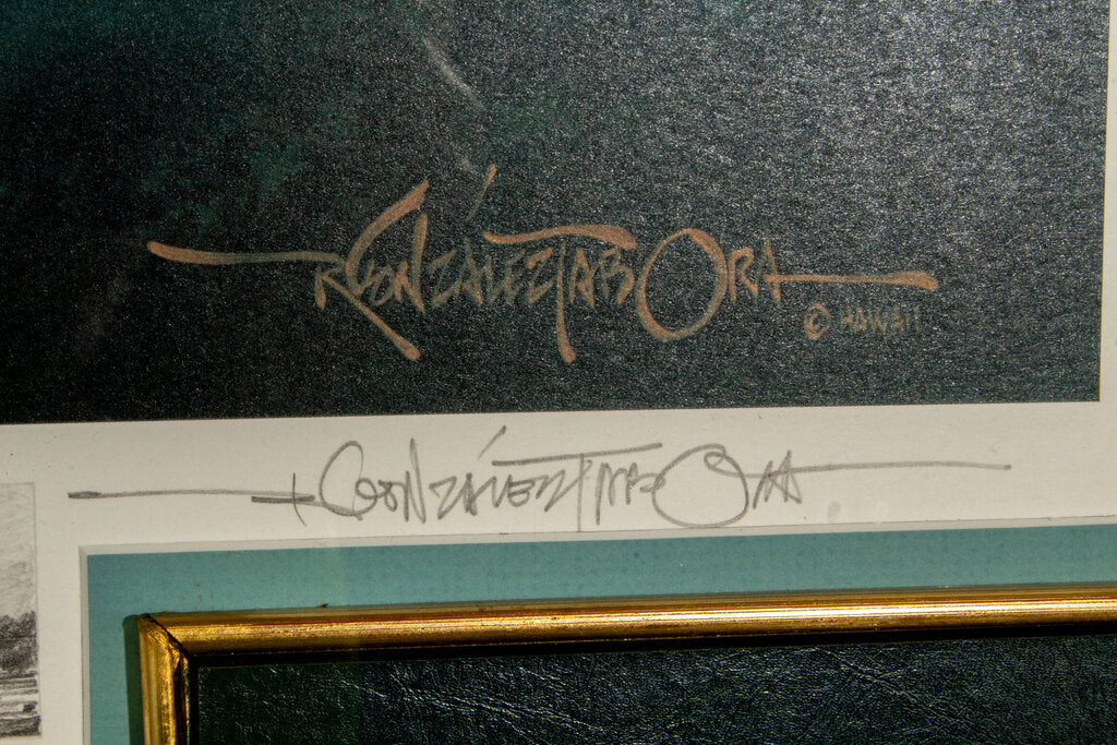 Description: Signed limited edition lithographic print (#34/450) framed w/ glass and double matted. Artwork: 20.5"x27" Condition: There is minor distressing to the frame and wrinkle areas on the mat.