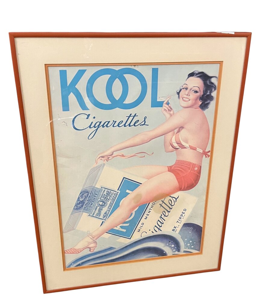 Vintage Kool Cigarette Ad Pin Up Girl E.K. Bergey 14x19