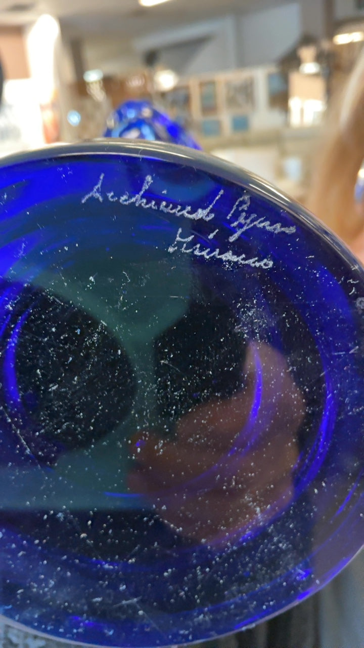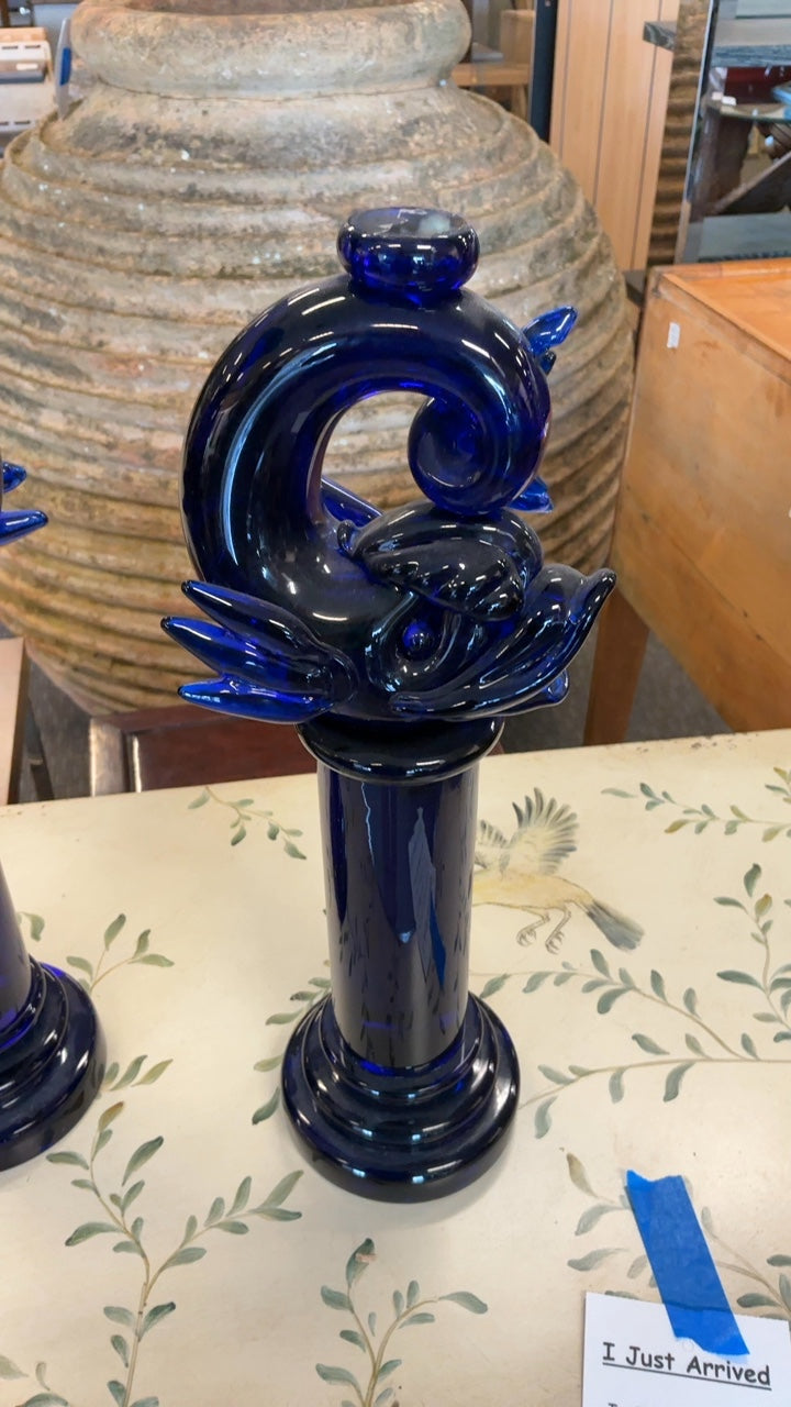 Archimede Seguso Murano Blue Candlesticks (Pair)
