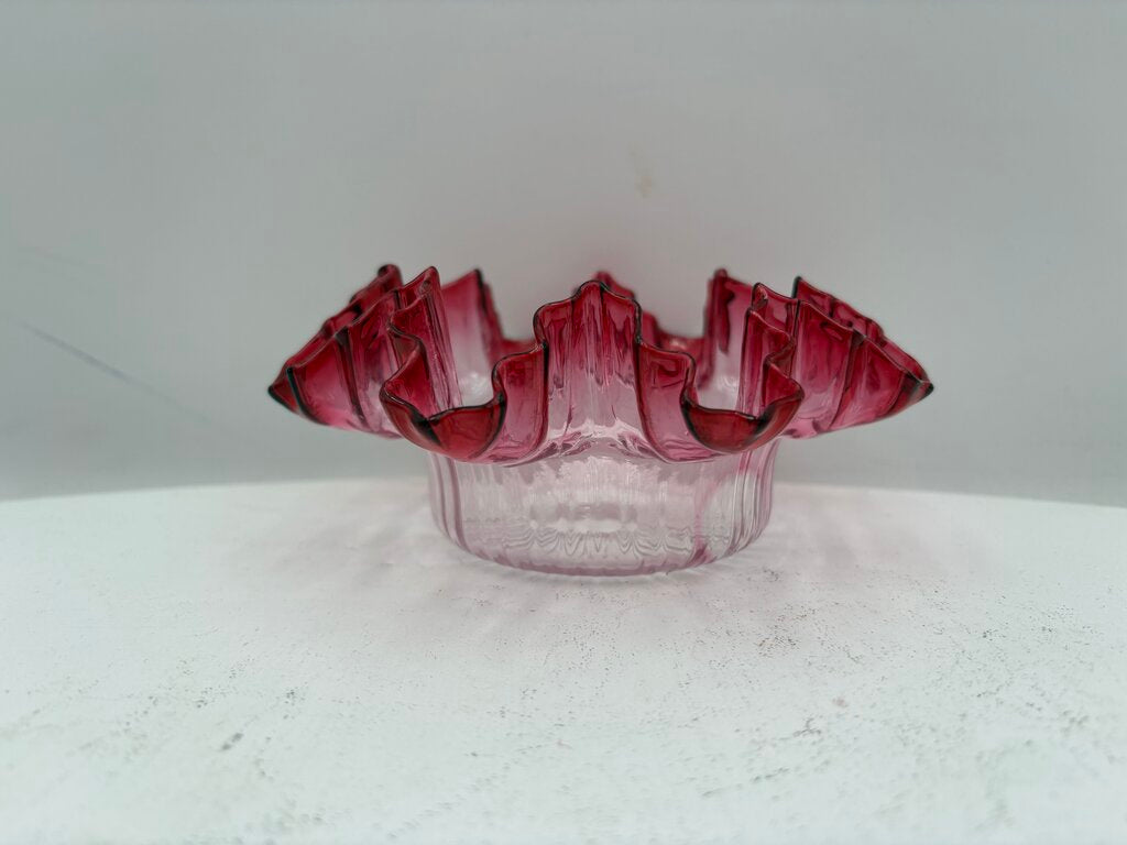 Fenton Art Glass Cranberry Ruffled Fluted Edge Clear Glass Dish
