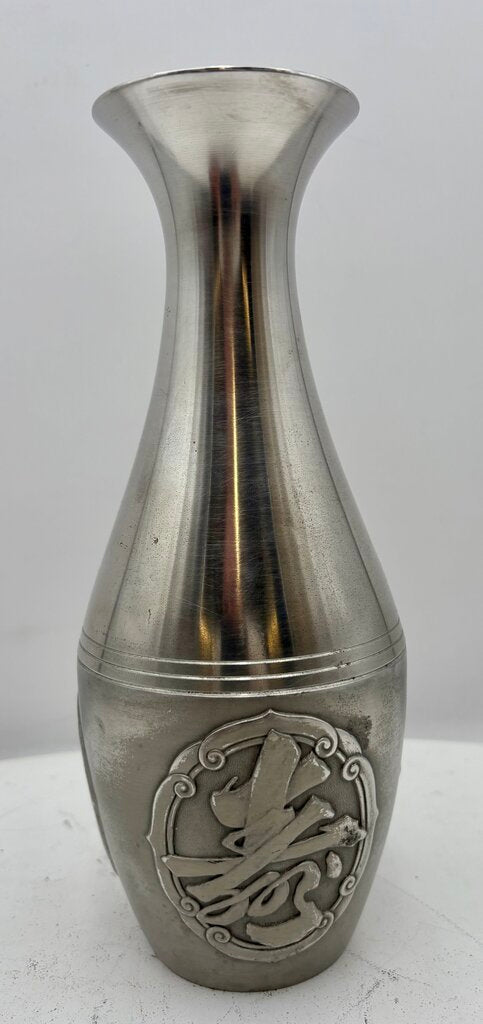 Selwin Pewter Japanese Motif Bud Vase 9.5"