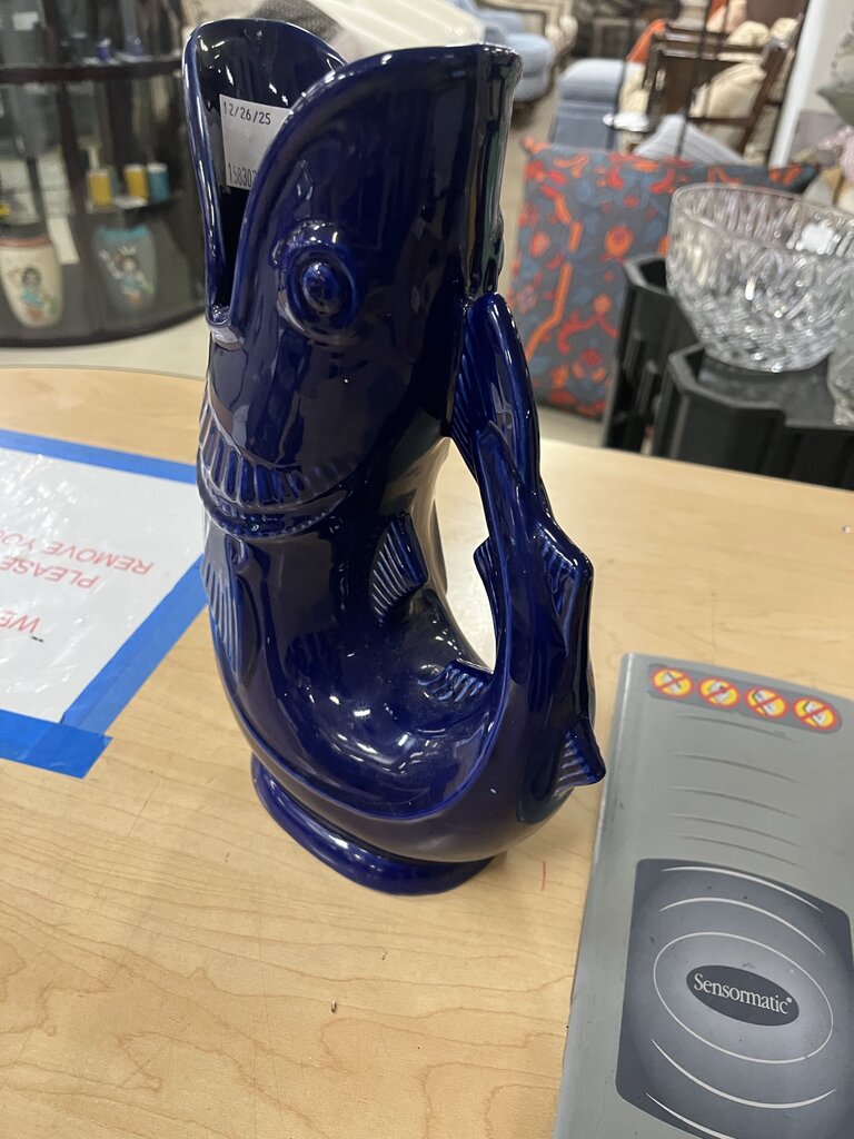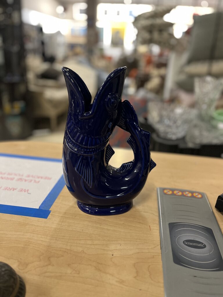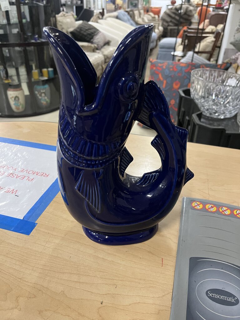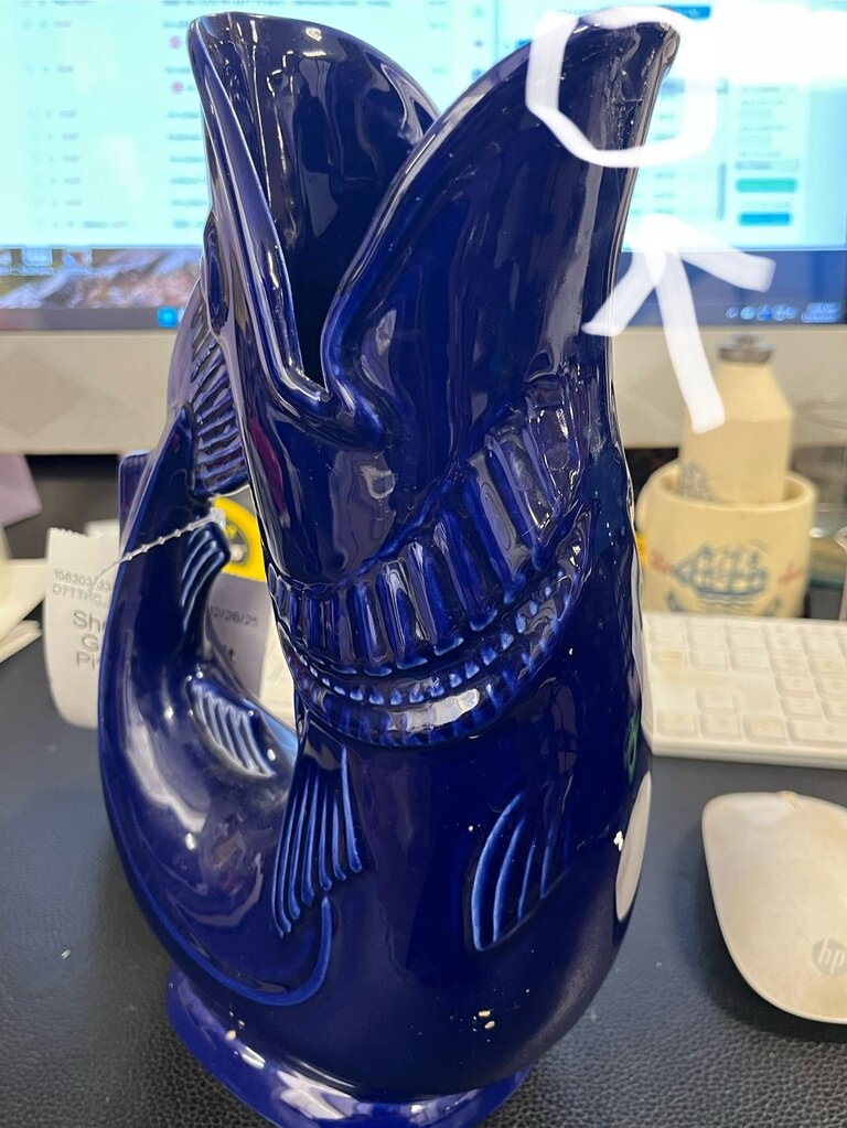 Shreve Cobalt Gurgling Cod Pitcher 11 Inch (Repaired)
