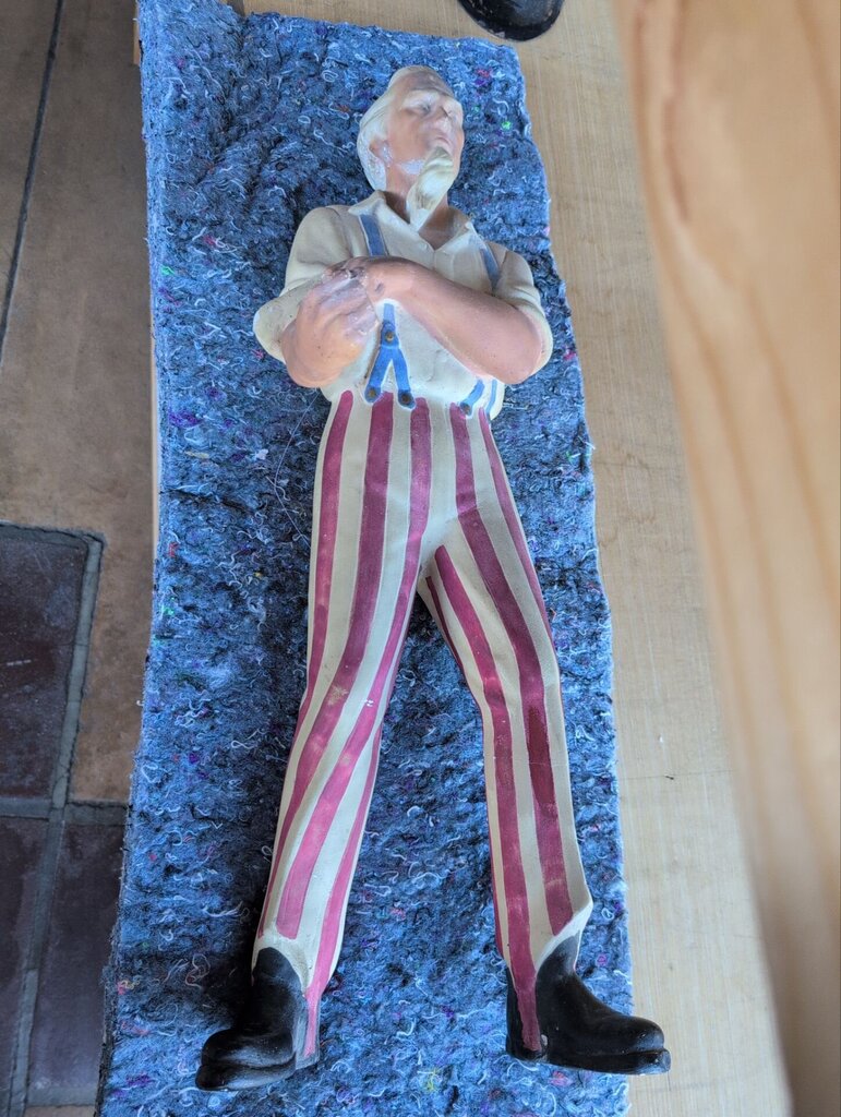 A hand-painted plaster sculpture of Uncle Sam standing 25 inches tall.