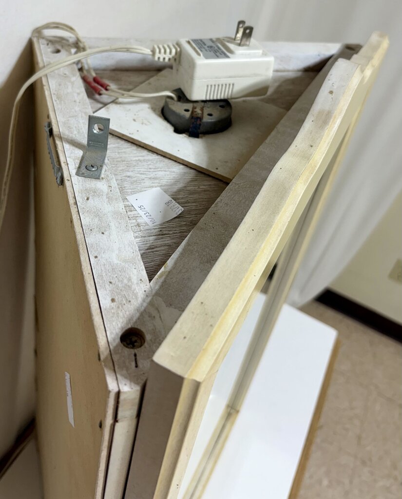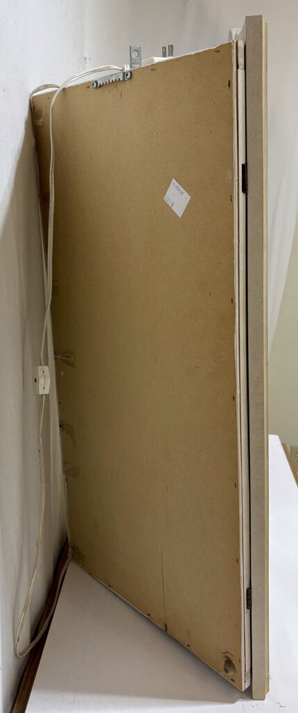 30"H x 19.5"W x 11"D Very Good Condition Wall Mounted Bombay Co. White Wood & Glass Shelf Corner Cabinet w/ Light