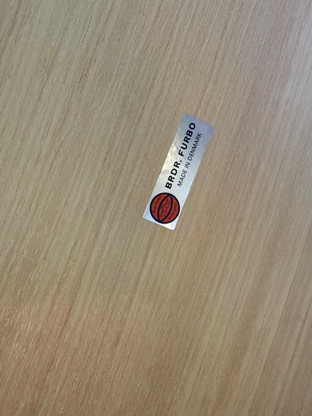 The design emphasizes restraint and practicality, with a squared top and seamless edges that highlight Danish mid-century craftsmanship. The folding action is designed to minimize hardware visibility, allowing the surface to fold flush and stack against the frame, embodying the era’s preference for functional elegance and pared-down aesthetics.