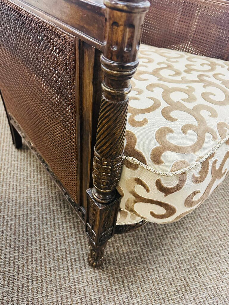 A pair of Edwardian-style lounge chairs. These chairs are intended for seating in a traditional living area and reflect Edwardian design elements.
