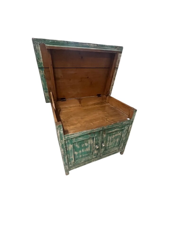 Green Distressed Wood Metal Lift-Top Cabinet 26.5x41x32.5