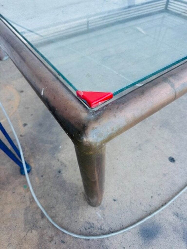 John Maschroni Style Brass & Glass Coffee Table 46x46x16