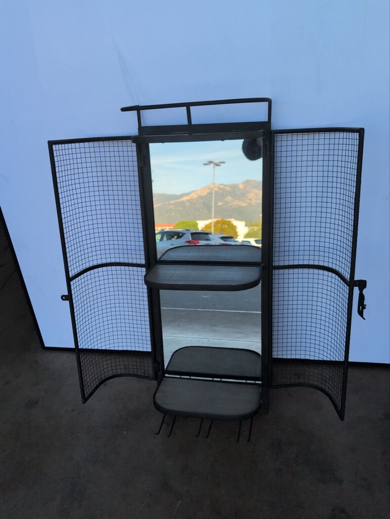 SpecificationsThe cabinet presents a tall, slender silhouette with clean, geometric lines typical of industrial-finished metal furniture. A mirrored back panel creates depth and reflects ambient light, enhancing the sense of space in smaller rooms. Mesh side panels offer a textural contrast to the solid frame and allow airflow around stored bottles, contributing to a practical, utilitarian aesthetic that pairs well with modern, loft, or minimalist interiors.