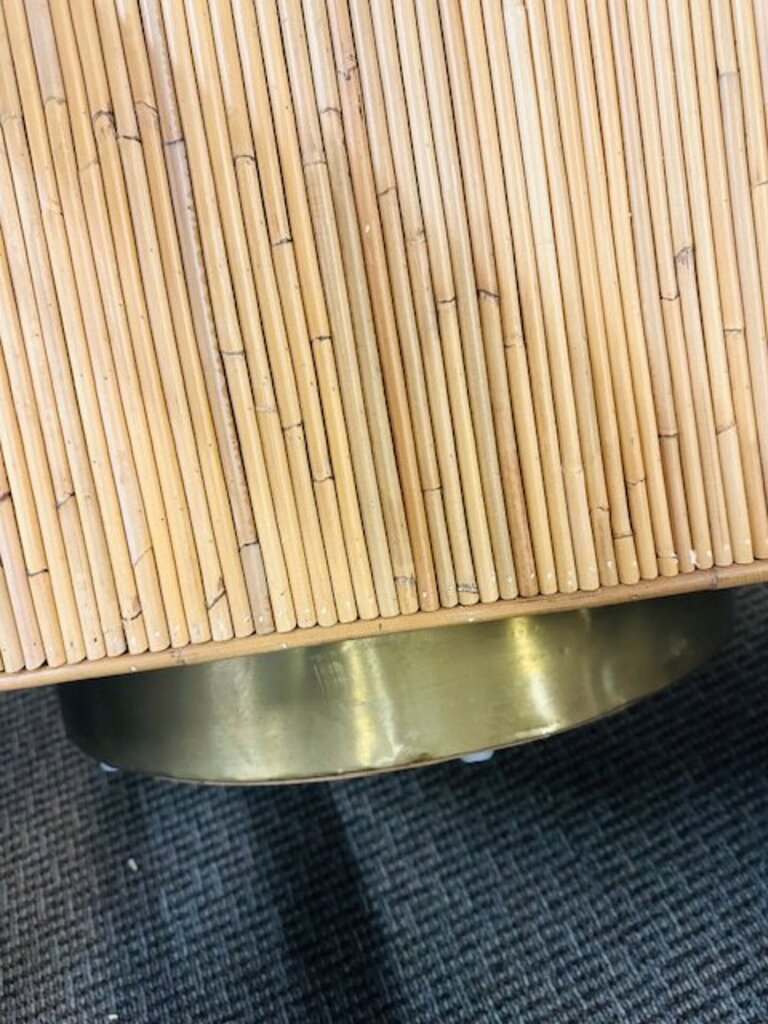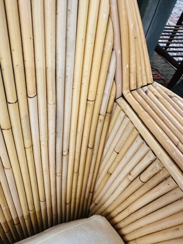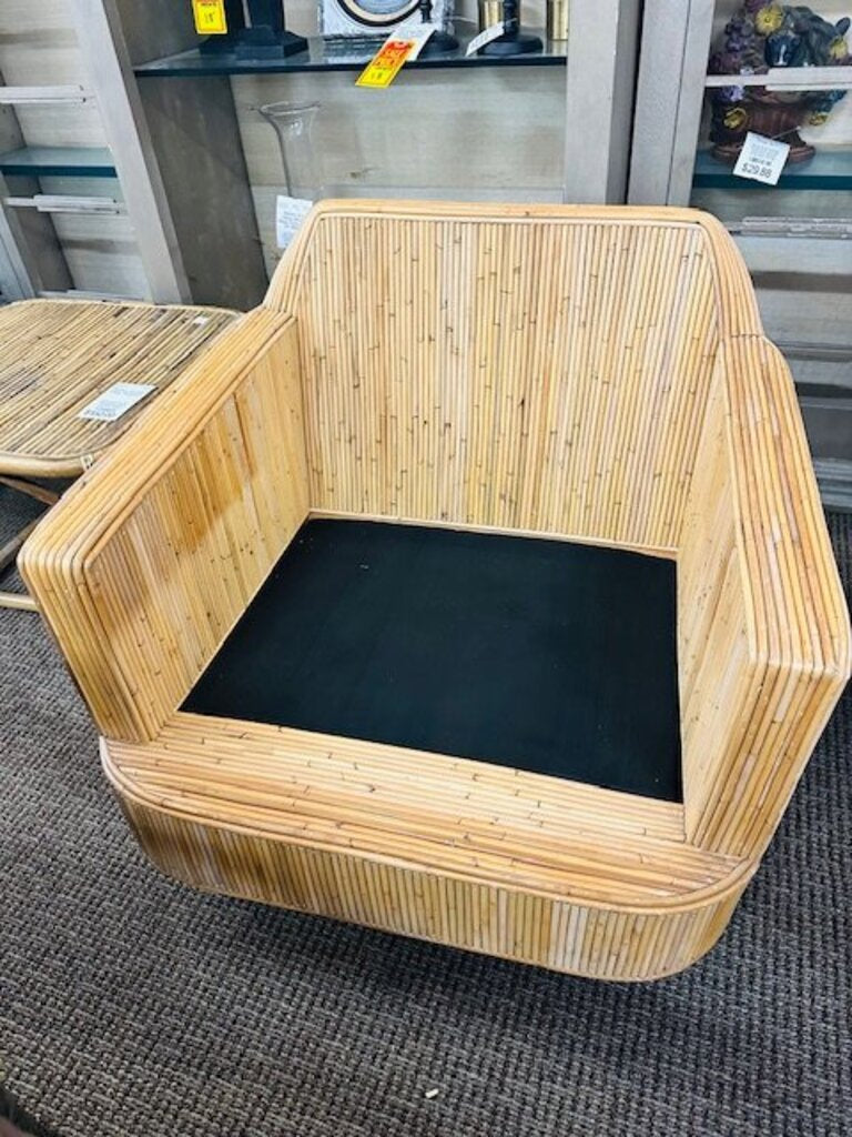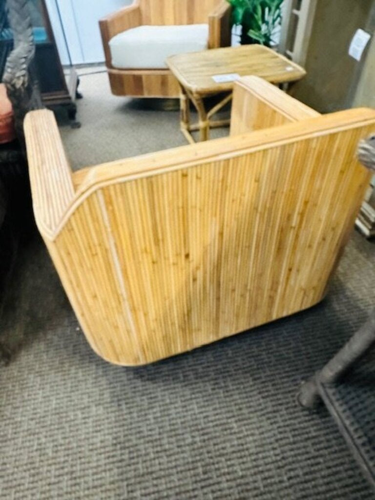 Milo Baughman Style Cased Bamboo Swivel Chairs (pair) Cushions by Justina Blakeney