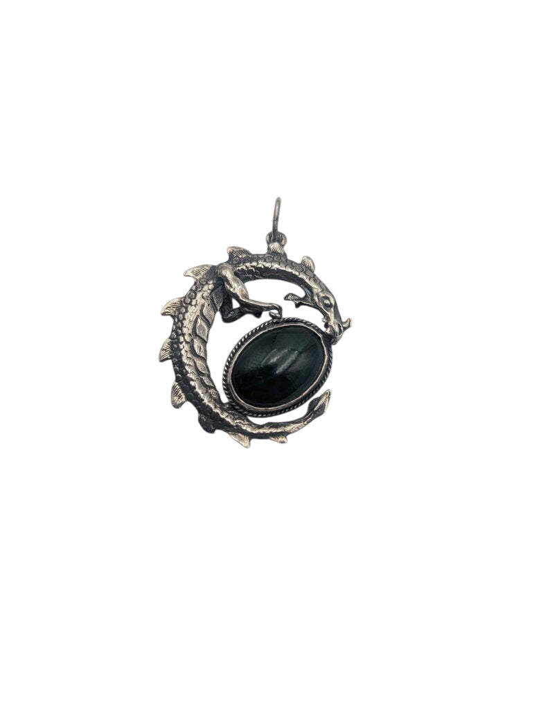Pendant Silver Dragon w/ Malachite Cab