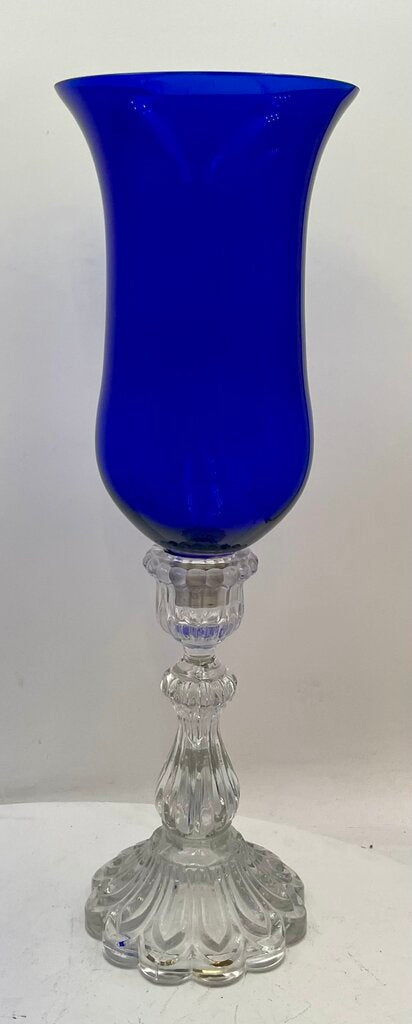 19.6"H x 6.25"Dia. Shade x 5.6"Dia. Base Excellent Condition Vintage Clear Molded Glass Base & Cobalt Blue Blown Glass Shade 2 Piece Candle Holder