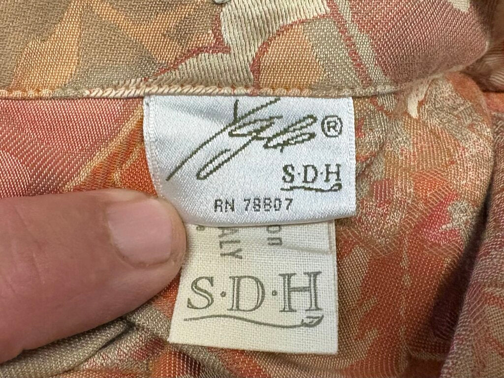 24"H x 28"W Very Good Condition Ygle S.D.H Italy Rust Hibiscus Floral Print Pillow Shams (PAIR)