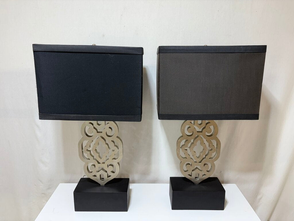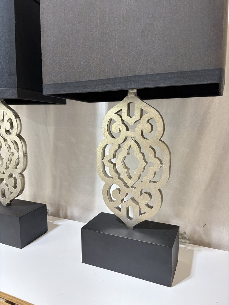 Silver & Black Metal Moroccan Style Table Lamp (PAIR)