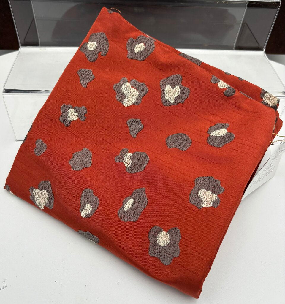 17"Sqr. Very Good Condition Custom Pillow Cover P.Kaufmann "Fierce Cayenne" with Embroidered Cheetah Print