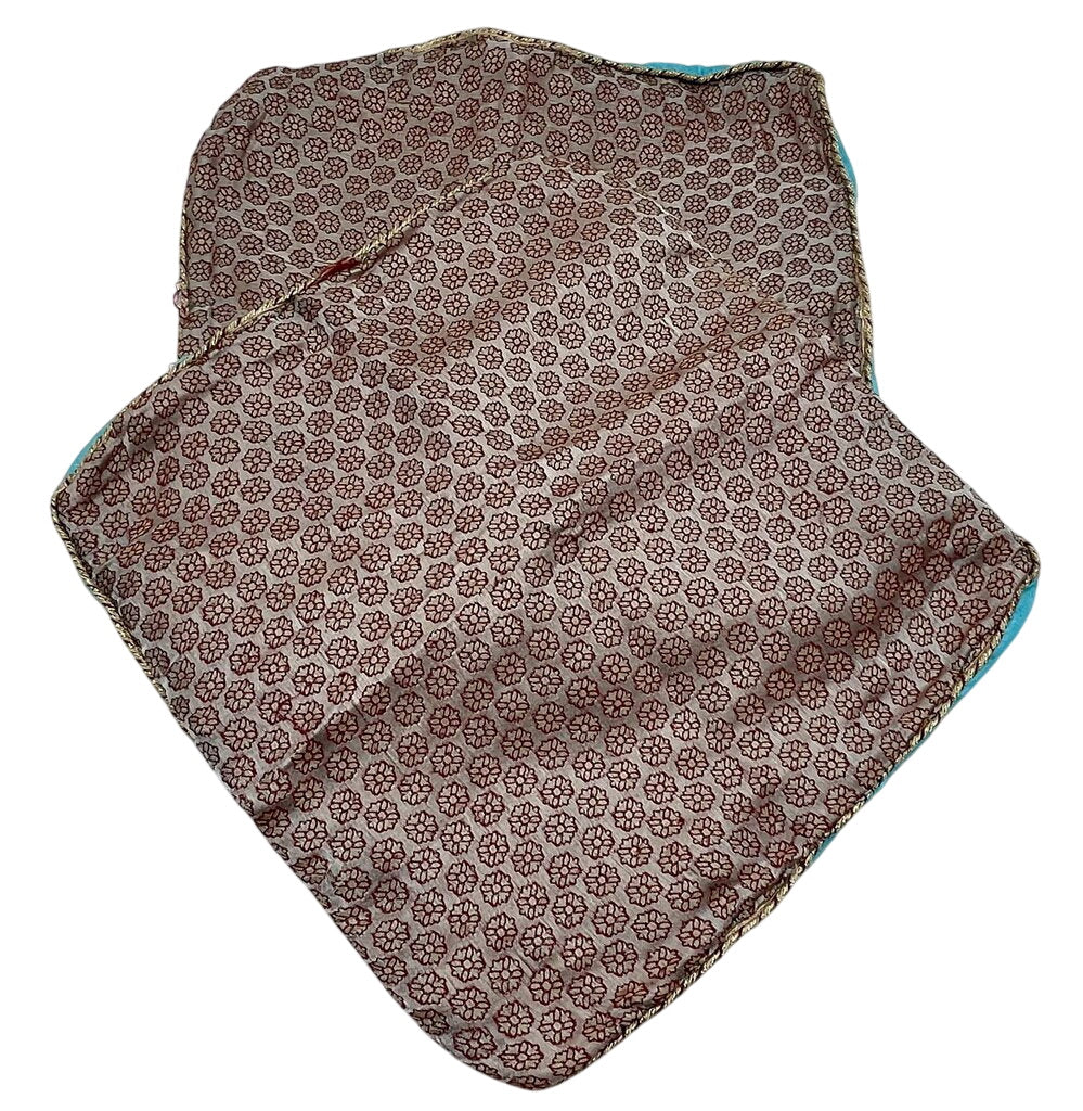 Miss Daisy's Consignment & Auction House offers a pair of Moroccan Silk Turquoise Floral Pillow Covers. Each cover is crafted from silk and features a repeating Moroccan-inspired floral motif with turquoise edge trim, designed to fit standard 11 x 11 inch pillow inserts.