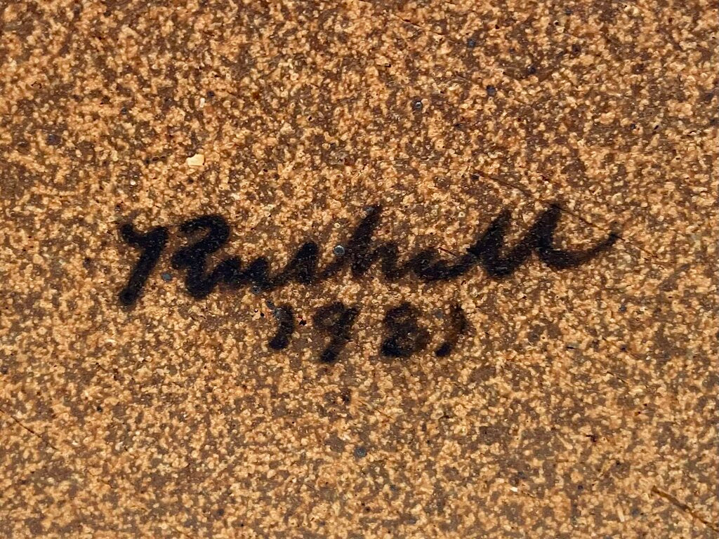 4.1"H x 4.5"Dia. Excellent Condition Signed 1981 Dayle Rushall Pottery Brown Earth and Sea Lidded Terracotta Jar