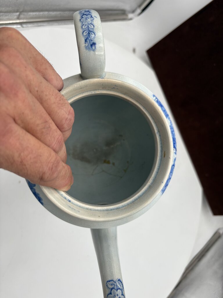 Early 19th C. Staffordshire Blue White Pastoral Scene Coffee Pot