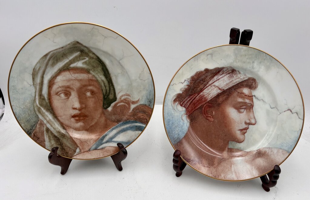 1"H x 8.25"Dia. Excellent Condition Fitz & Floyd Michael Angelo I & II Plate Set 8.25" (2Pcs)