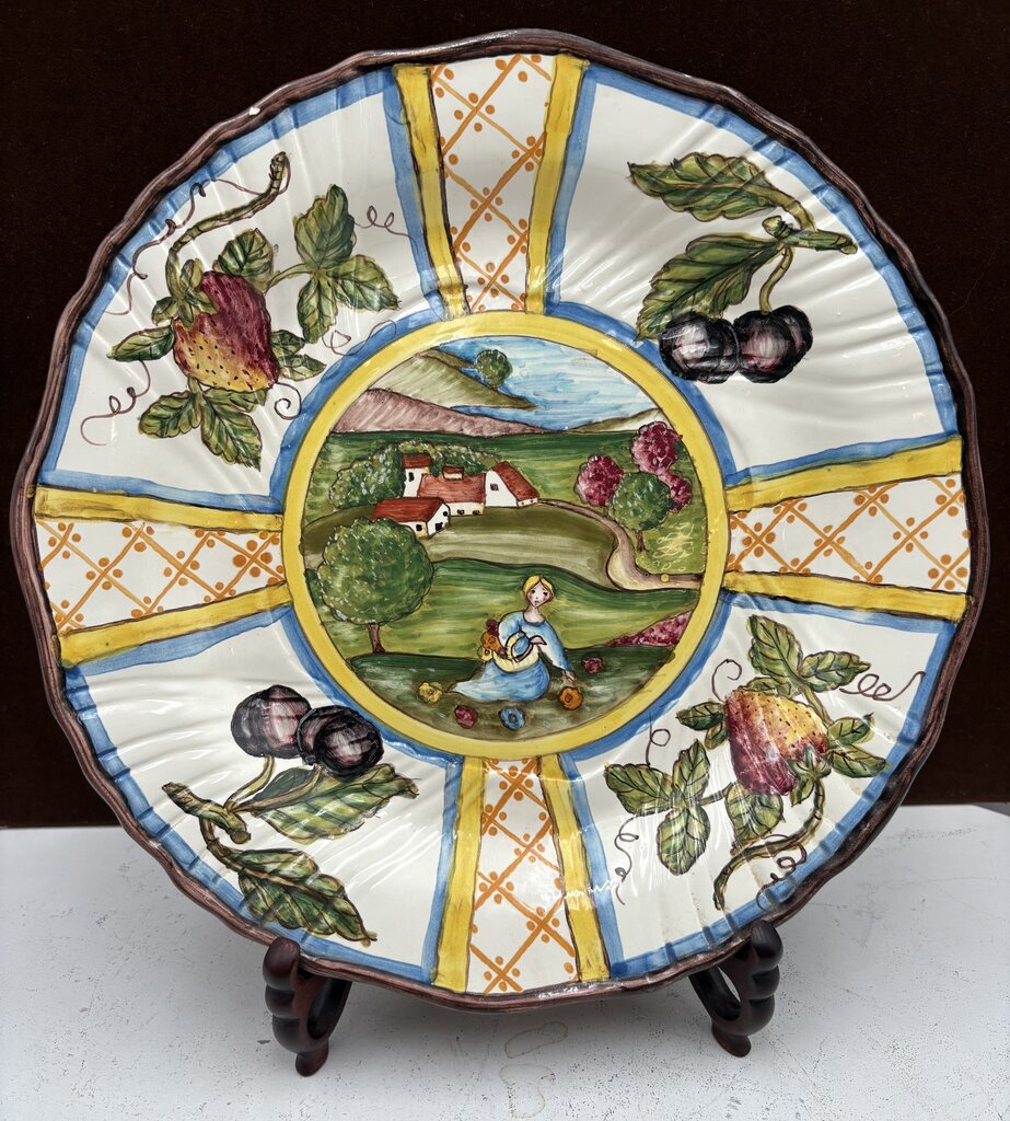 11.6"Dia. x 1.25"D Excellent Condition Vintage Italian Vietri sul Mare "Four Seasons" Decorative Wall Plate 11.6"
