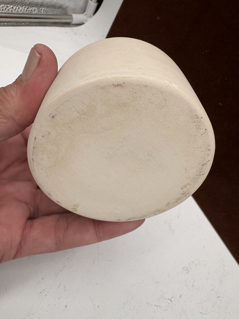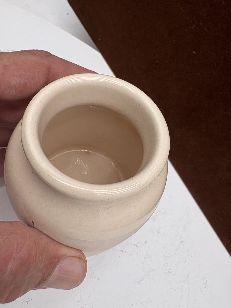 3.5"H x 3.25"Dia. Excellent Condition L.A.B. Lagny French Style White Drip Glaze Mustard Jar