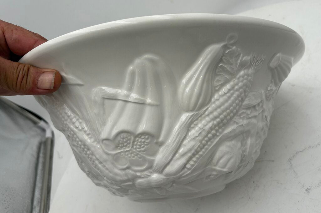 6"H x 13.5"Dia. Excellent Condition William Sonoma Italian White Porcelain Holiday Harvest Serving Bowl 13.5"