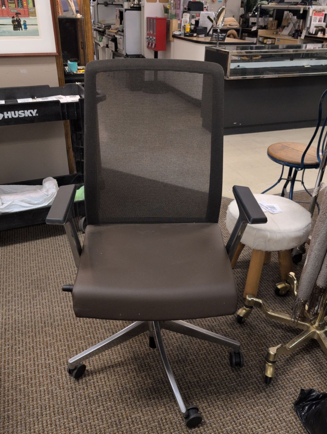 Sleek silhouette with a comfortable padded seat and adjustable height mechanism. Simple and contemporary design perfect for a modern office setting.