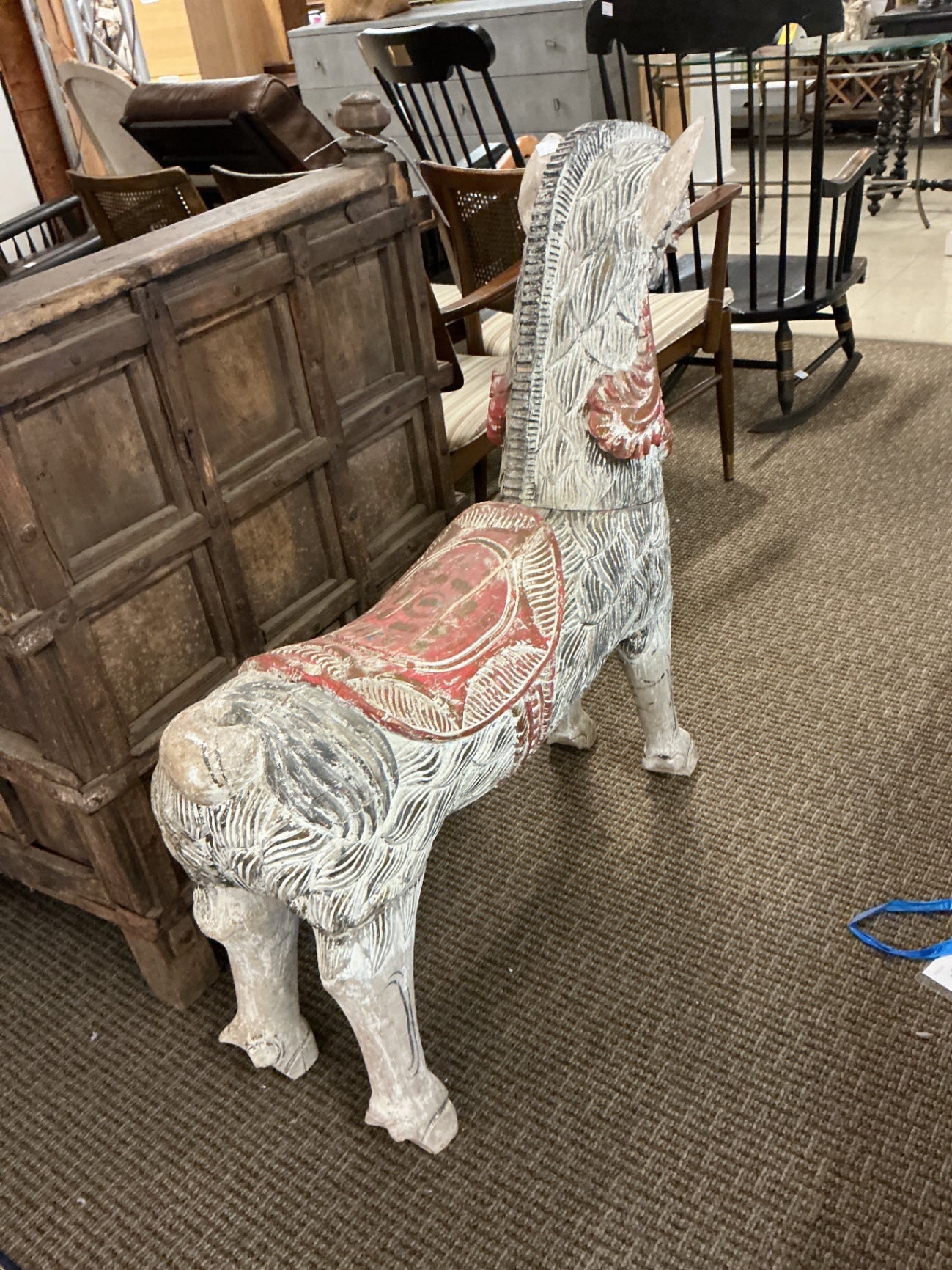 This wood carved Bali horse features intricate detailing and a beautiful design.