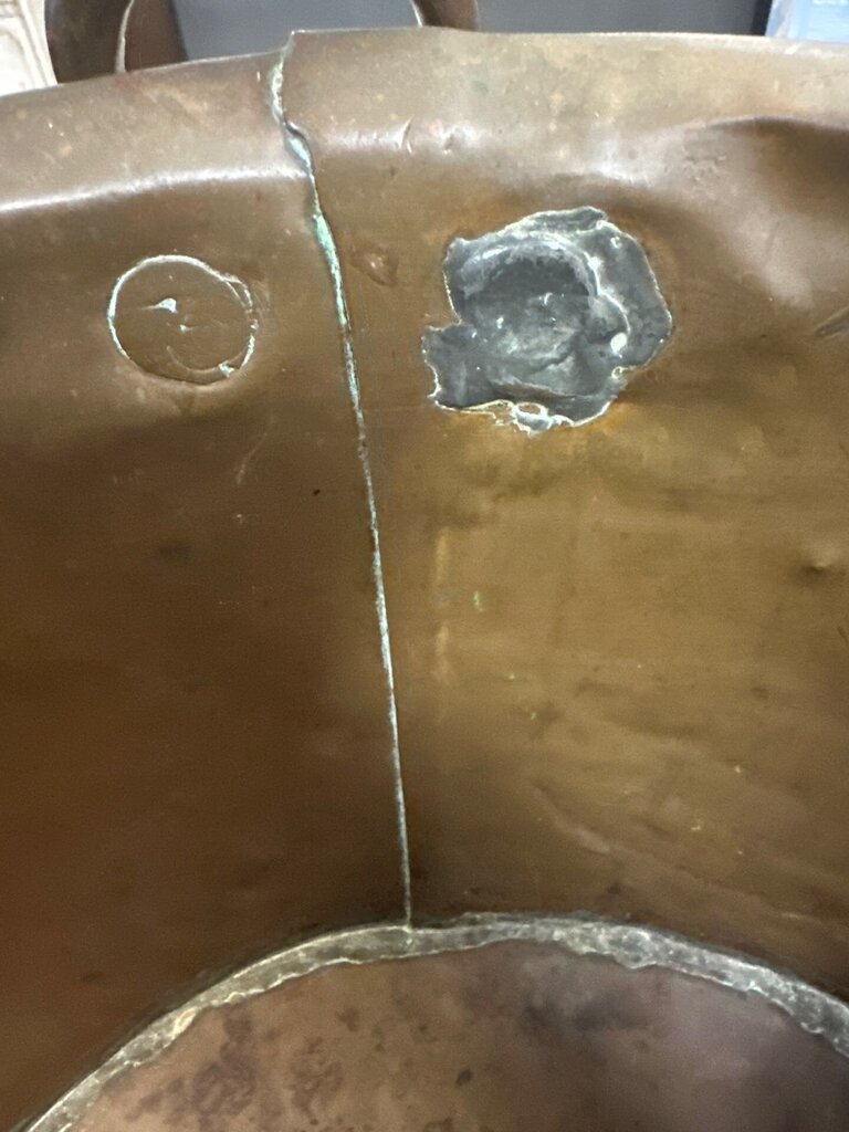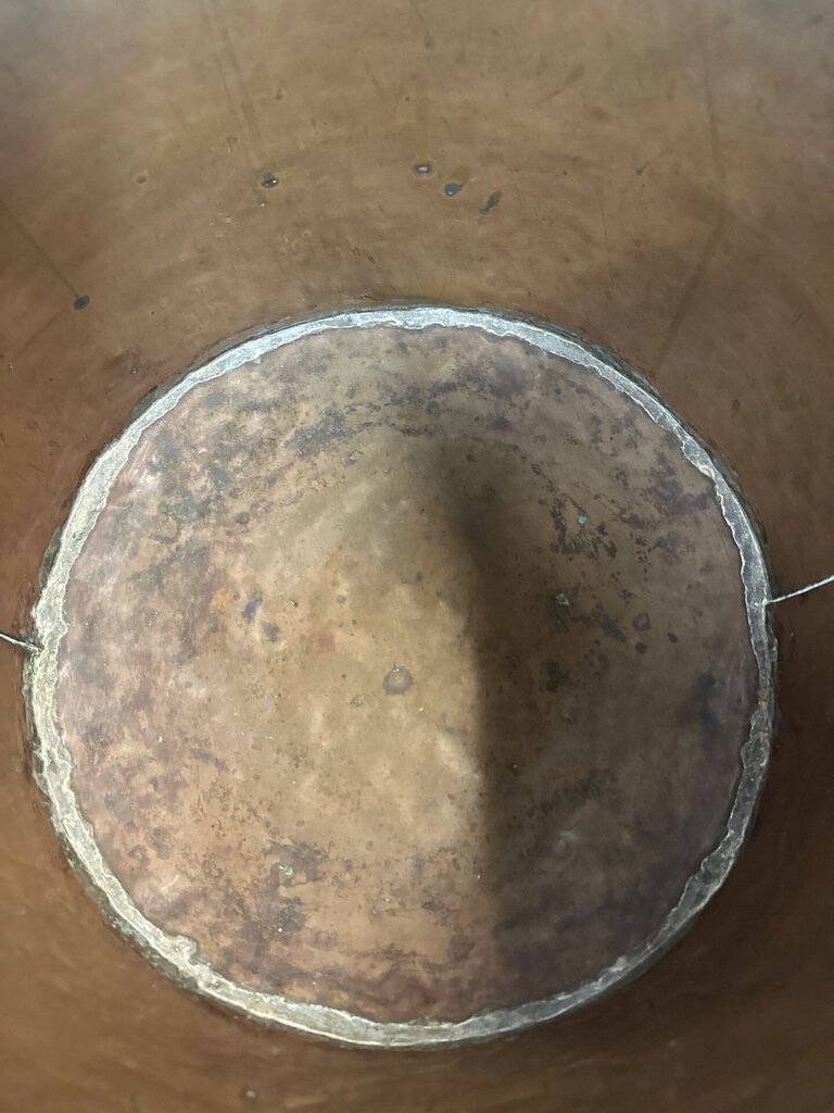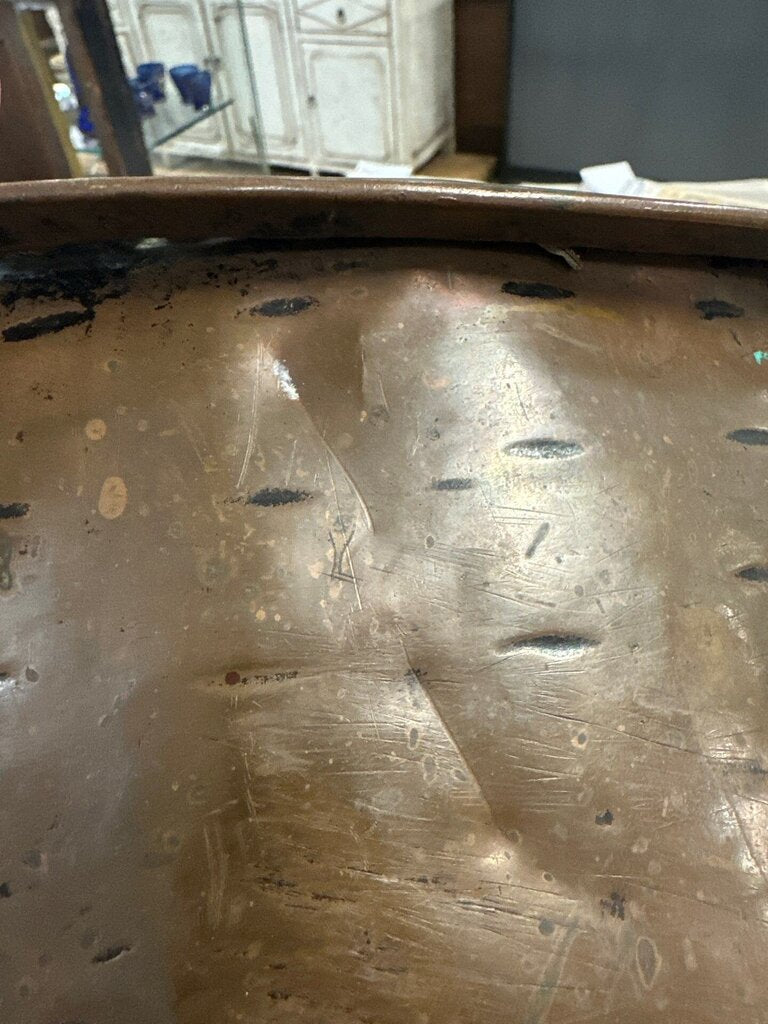 Antique Hand-Hammered Copper kettle with Riveted Ring Handles