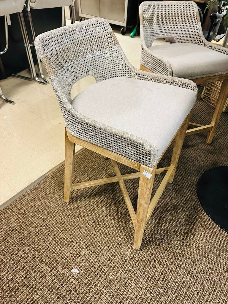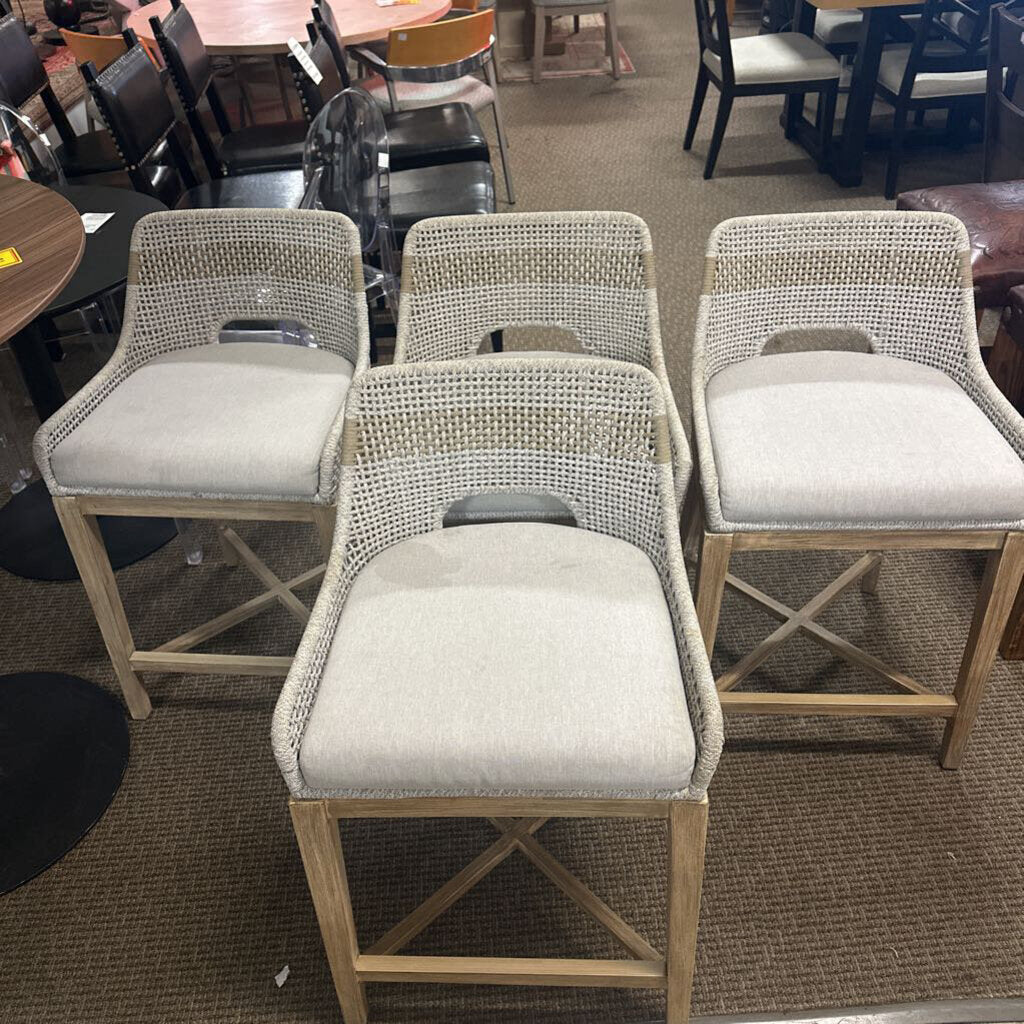 Essentials For Living Woven Counter Stools (Set of 4) natural fabric seats, and woven rope backs.