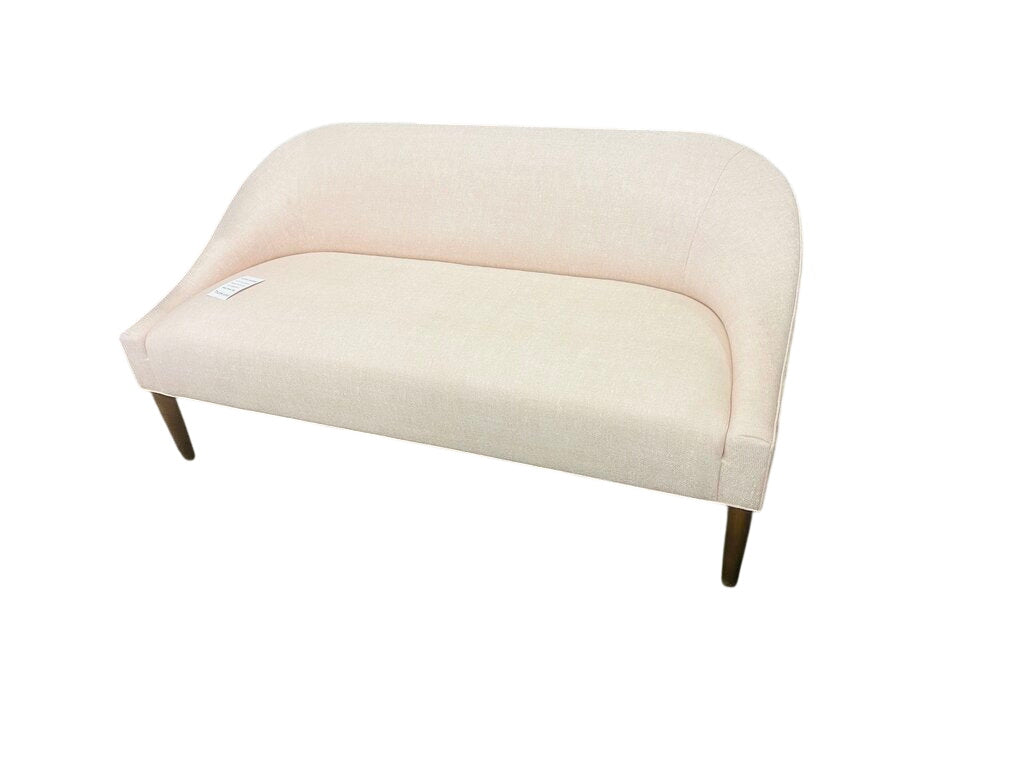 A vintage Bella settee attributed to Mitchell Gold + Bob Williams, featuring upholstered seating on a solid frame with a compact silhouette. The design emphasizes clean lines and a restrained profile, making it adaptable to a range of interiors from contemporary to traditional. This piece is suitable for living areas, entryways, or lounge corners, where its understated presence can complement a variety of textiles and surrounding furnishings.