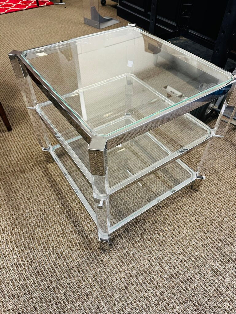 Milo Baughman Style Chrome Glass Side Table 22x24x24