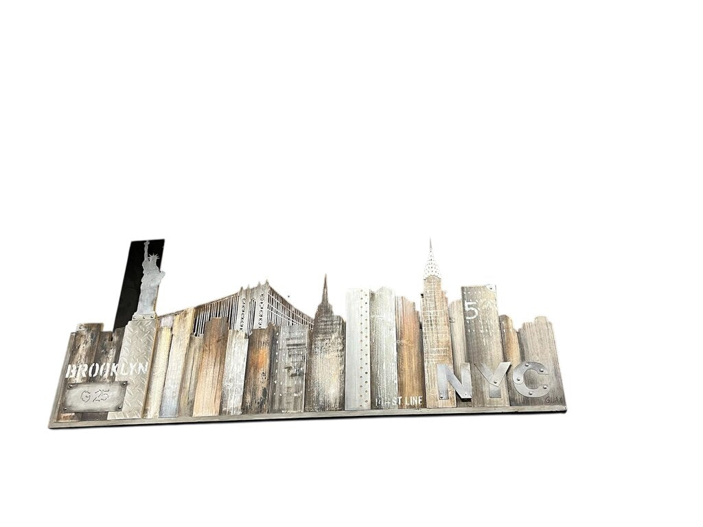 Renwil Brooklyn & G 25 St Line Sculpture Hand-painted on wood and embellished with metal accents.