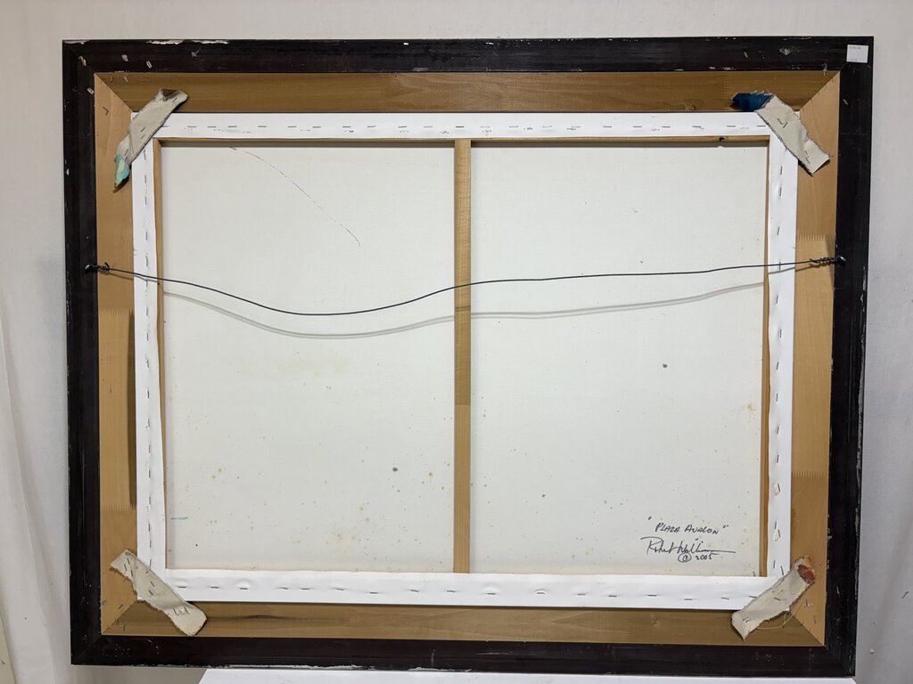 Frame: 39"H x 48.75"W x 1.6"D Image: 30"H x 40"W Excellent Condition Painting by Robert Williams "Plaza Avalon" 2005 Original Oil on Canvas Signed Front/Back