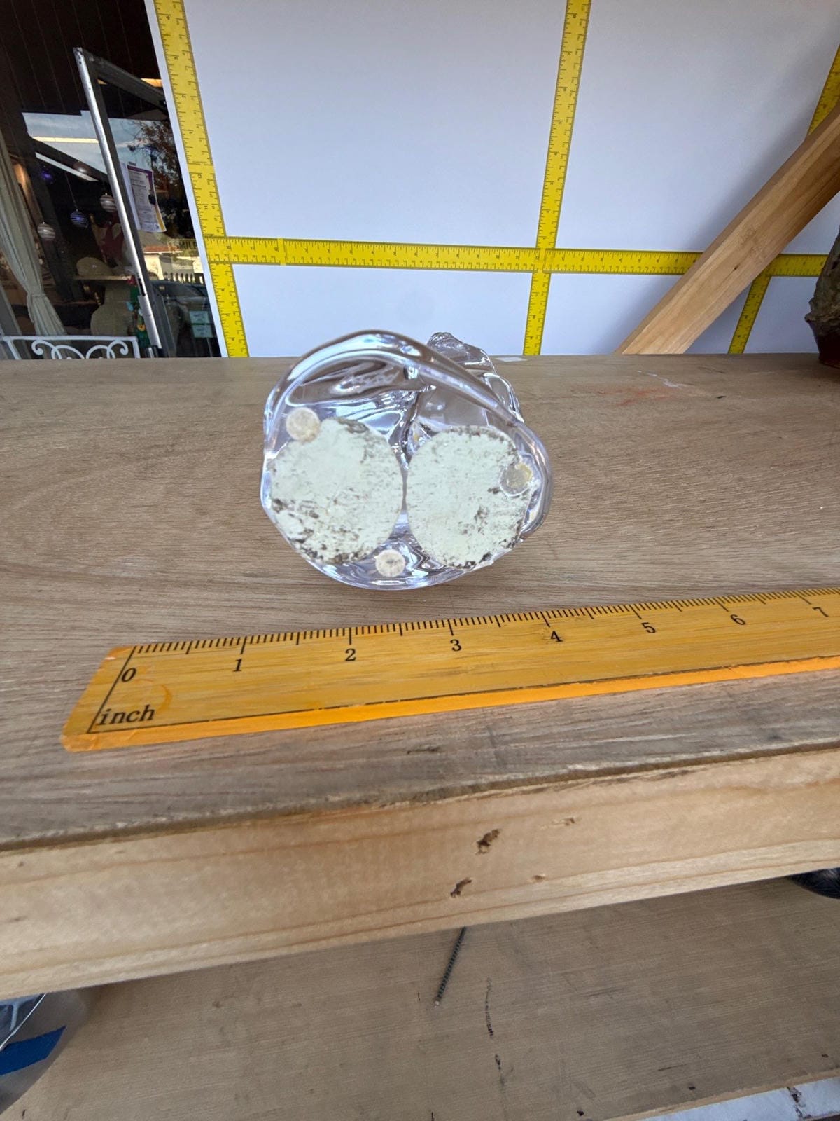 A clear crystal cat figurine crafted from transparent optical crystal, featuring precise facets that catch light and create subtle sparkle. The slender feline form is rendered in a poised, attentive pose with clean lines and a smooth silhouette that suits both modern and traditional display environments. The piece is designed for shelf or cabinet display and pairs well with other glass or crystal collectibles. The base bears a signature, though its authenticity is not verified, a detail of interest to some collectors.