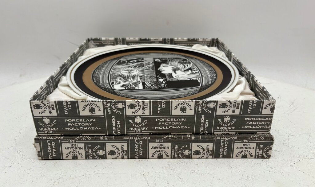 Hollohaza Hungary Endre Szasz "Sunshine" Gilt Porcelain Plate in Box
