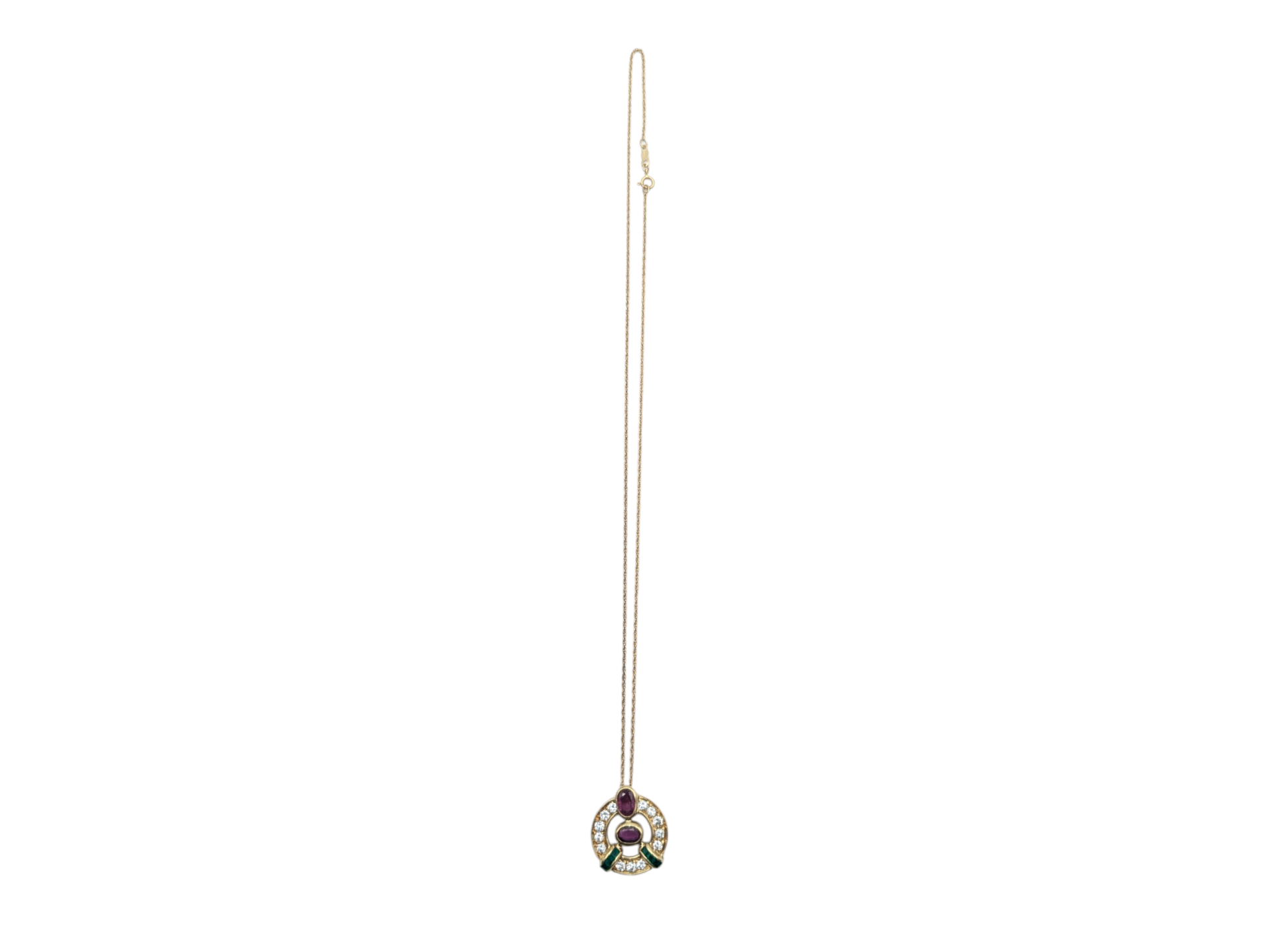 Pendant Necklace 18k Yellow Gold Rubies, Emeralds & Diamonds