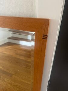 SpecificationsThe piece presents a clean, rectangular silhouette with a slim wooden frame that showcases the natural grain. A beveled edge around the mirror adds subtle depth and light reflection, contributing to a quiet, modern aesthetic that pairs well with minimalist, mid-century, or rustic-modern décors.