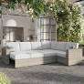 This Thomasville Dillard convertible outdoor patio sofa is made of durable materials suitable for outdoor use. Its versatile design allows for multiple seating configurations.