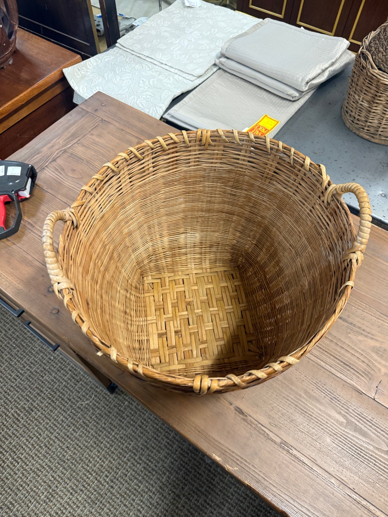A French wicker basket, perfect for storage and organization. Made of natural wicker with a durable construction.