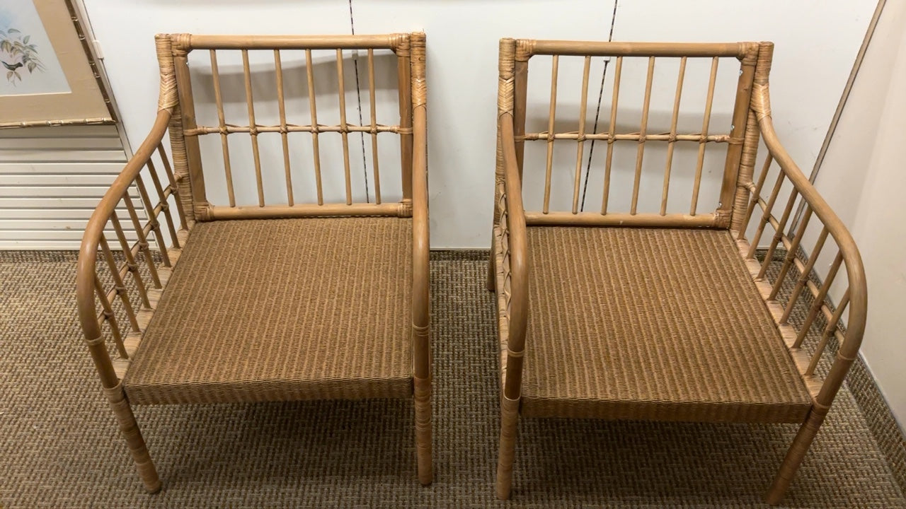 These chairs feature a sturdy rattan construction with comfortable cushions.